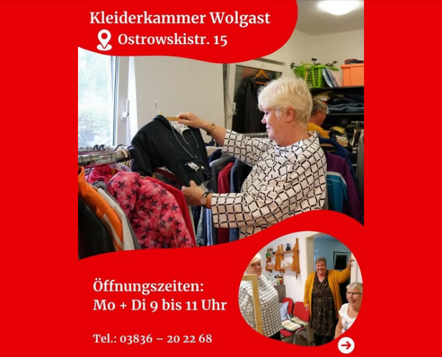 Gute Nachrichten: Unsere Kleiderkammern werden auch ab 2026 weiterhin für euch da sein. Dank des großartigen Engagements unserer Ehrenamtlichen bleibt das Angebot an allen drei Standorten in Anklam, Greifswald und Wolgast mit angepassten Öffnungszeiten erhalten.